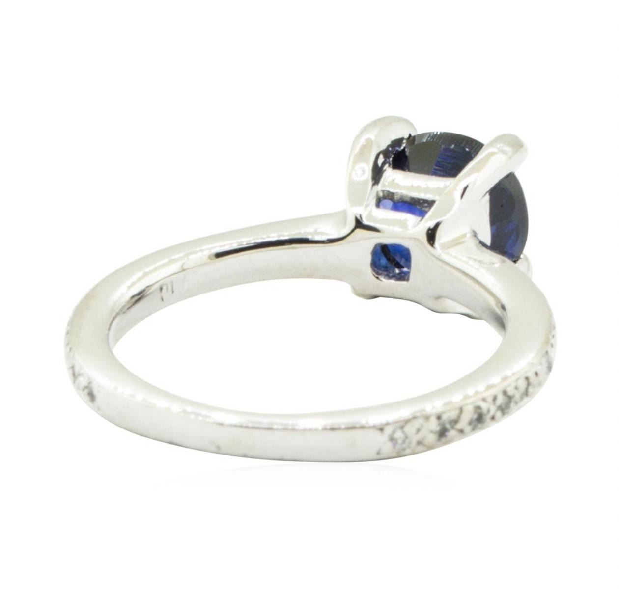 One ring featuring: platinum weighing 5.6 grams containing one blue sapphire weighing 1.75ct and diamonds weighing 0.25ctw.