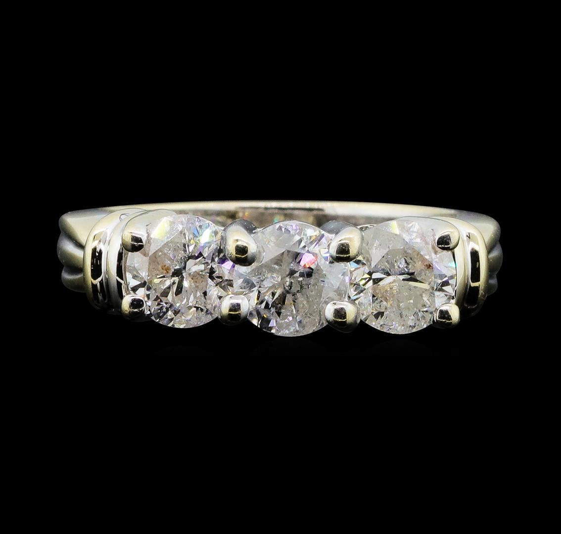 One electronically tested 14KT white gold lady's cast 3-stone ring with a tapered shank with a bright polish finish. The featured lady's ring has a shank measuring 2.70 millimeters wide. Identified with markings of '14K'. Condition is new, good workmanship. Containing: Three prong set round brilliant cut diamonds, measuring 5.50 - 5.44 x 3.55mm (depth est.) approximate total weight of 3 Stones = 2.00ct. Graded in the setting. Color H - I Clarity I-2 Cut Good. Total Weight of Diamonds 2.00ct.. Total Weight of Ring 5.40gm GAS Appraised at $6695.00. GAS Appraised at $6,695.00.