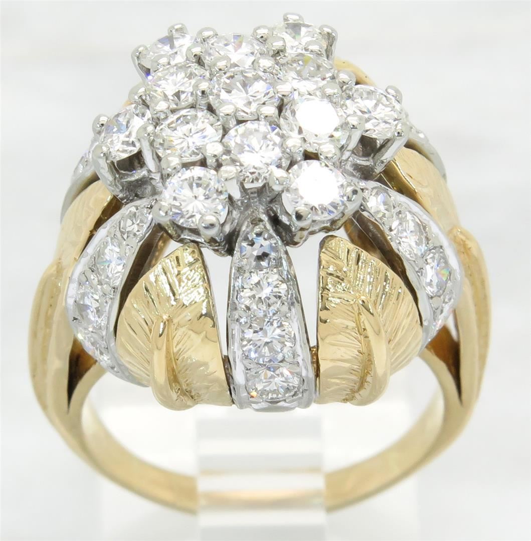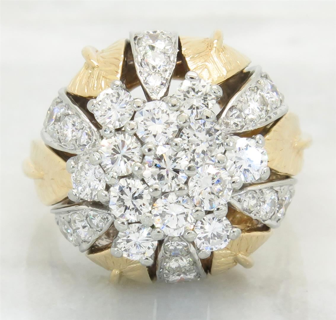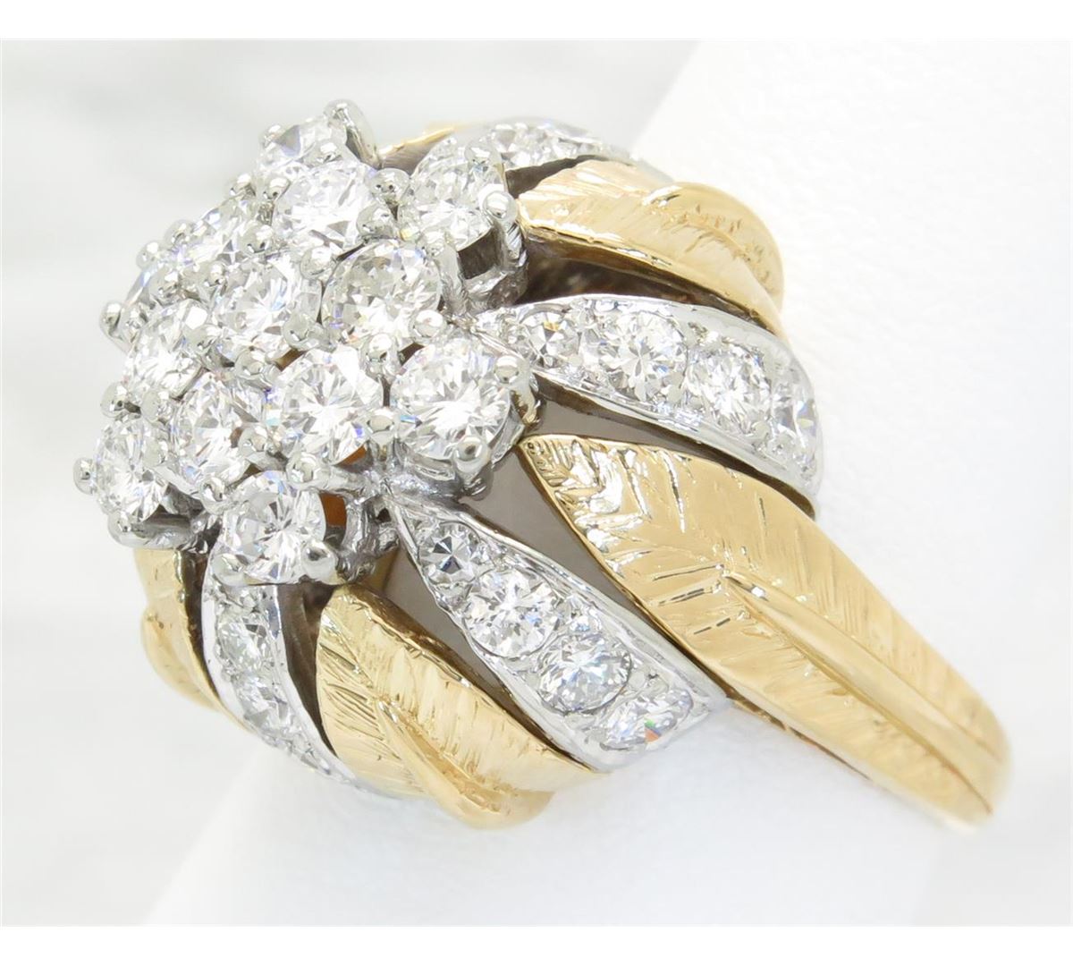 One tested 14K gold diamond ring. Containing: 31 Round Brilliant Cut Diamonds, 6 Single Cut Diamonds. Clarity: SI1-I1, Color: G-I. Approximate total diamond weight: 2.00CTW. All diamonds are graded in the mounting unless otherwise stated. Weight of ring: 10.9 grams, Size: 5.75.