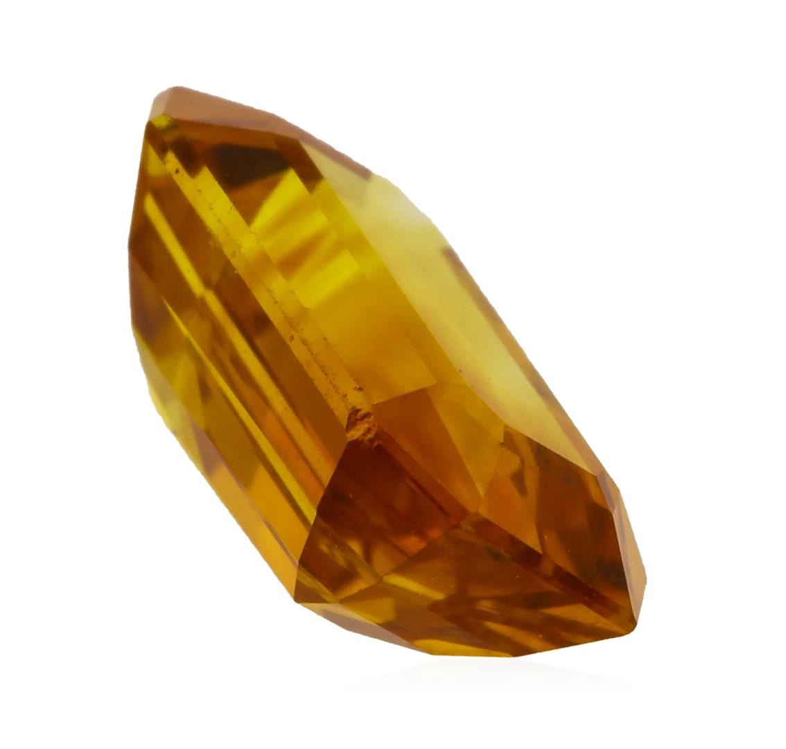 One emerald standard step cut natural orange sapphire, measuring 8.72 x 5.43 x 3.82mm, (depth est.) approximate weight of 2.00ct., clarity is slightly included, medium, moderately strong, reddish orange color, (GIA rO 5/4), cut is very good. Transmitting light with a minimum of distortion, transparent. Colored gemstones are presumed to have been subjected to commonly used enhancement processes. Graded loose. GAS Appraised.