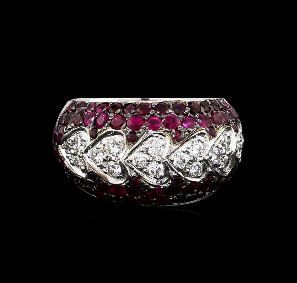 One ring featuring: 14KT white gold weighing 14.76 grams containing rubies with a total weight of 2.00ct and diamonds with a total weight of 0.80ct.