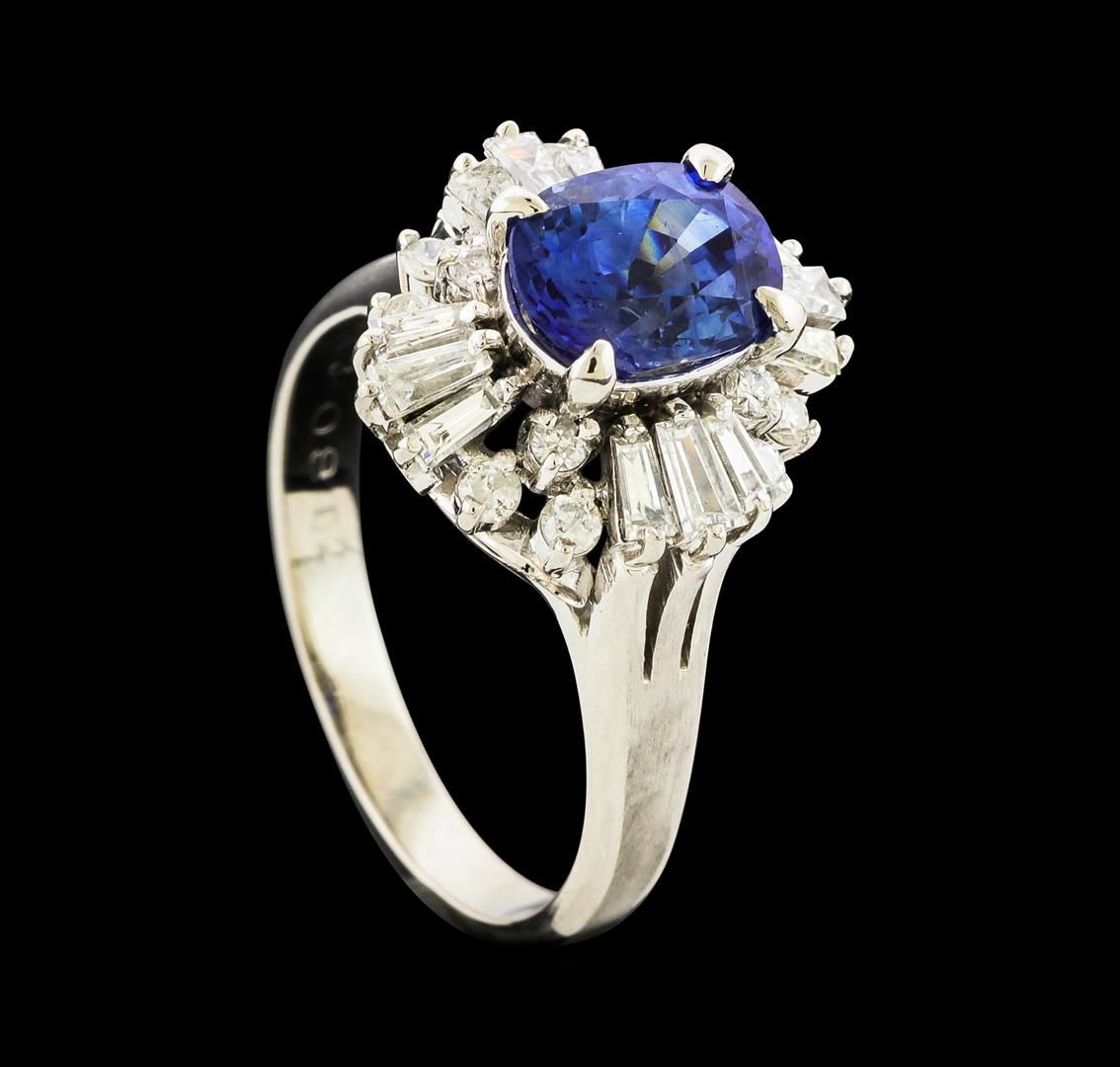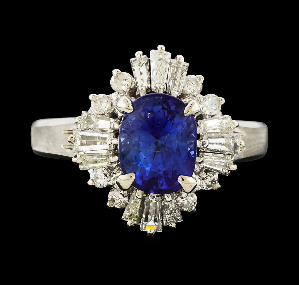 One ring featuring: Platinum containing Sapphire with a total weight of 2.00ct and Diamonds with a total weight of 0.80ct. Total Weight of Ring: 6.8 grams.
