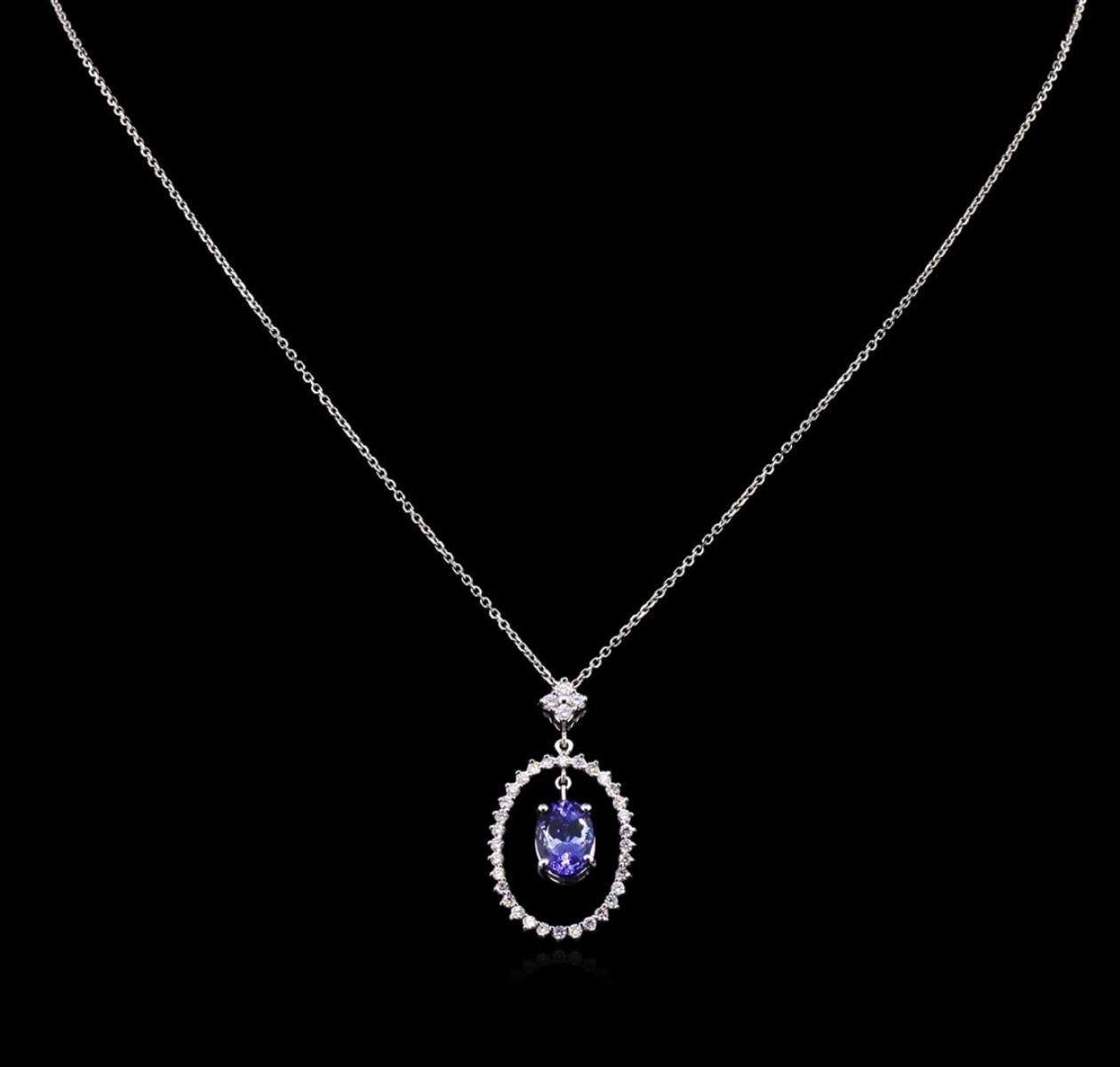 2.00 ctw Tanzanite and Diamond Pendant With Chain - 14KT White Gold