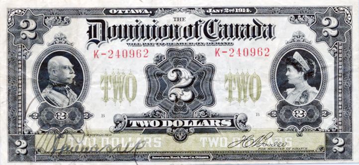 Jan. 2, 1914. DC-22b. No Seal. Boville. No. K240962/B. PMG graded Very Fine-30. Clean and bright.