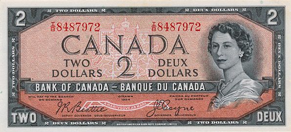 1954 Issue. BC-30b. Beattie-Coyne. ‘Devil’s Face’. No. I/B8487972. A ‘changeover’ note. BCS graded Unc-60.