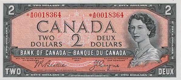 1954 Issue. BC-38aA. Beattie-Coyne. No. *A/B0018364. A replacement note. BCS graded AU-58.