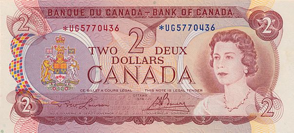 1974 Issue. BC-47aA. Lawson-Bouey. No. *UG5770436. BCS graded CU-62. Another replacement note.