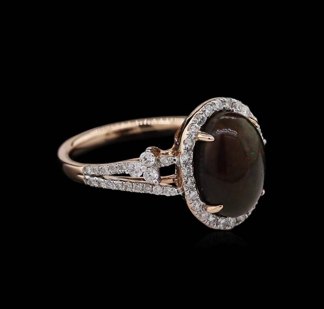 One ring featuring: 14KT rose gold weighing 3.55 grams containing one opal with a total weight of 2.00ct and diamonds with a total weight of 0.55ct.
