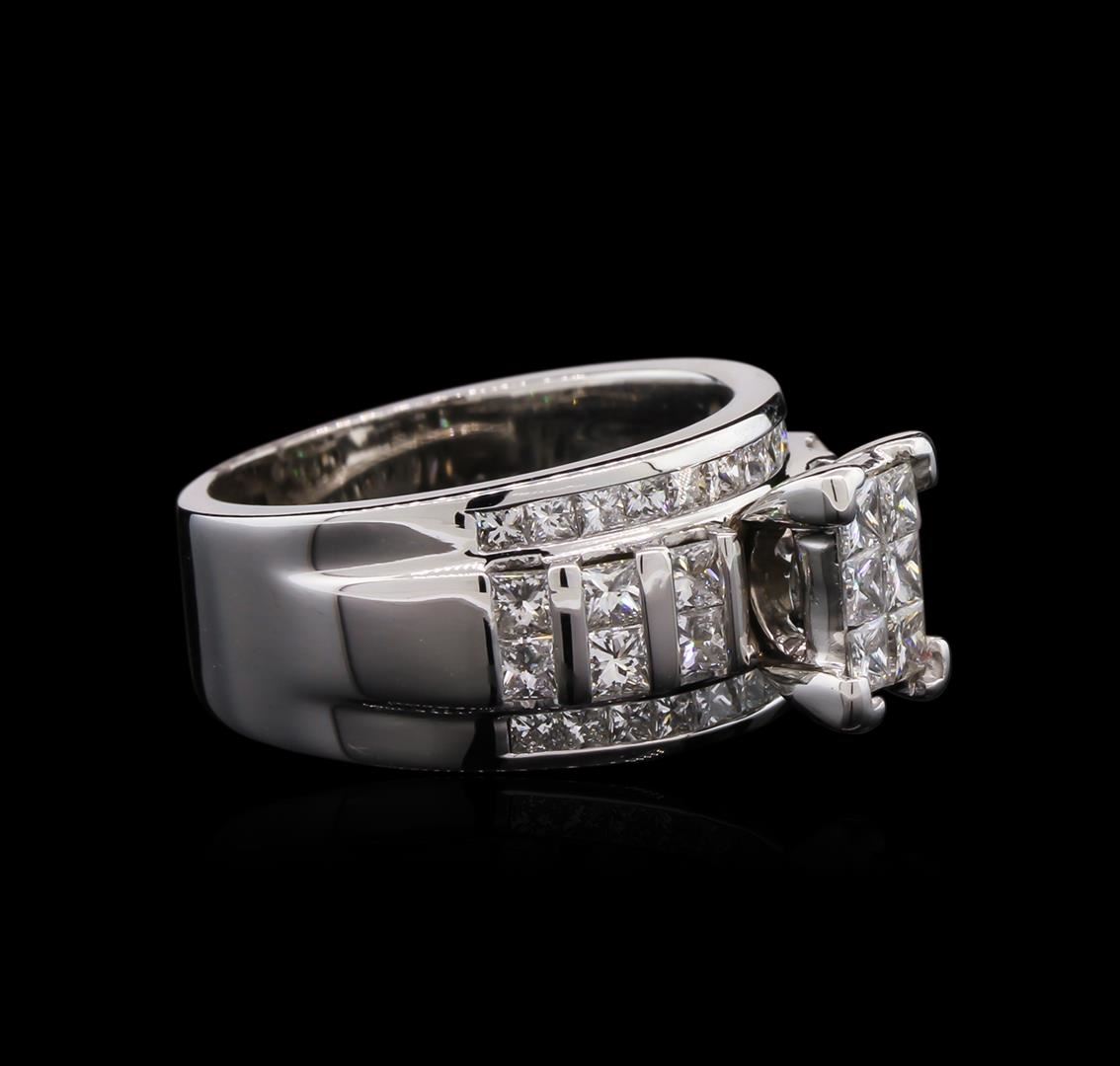 One electronically tested 14KT white gold lady's combination cast & assembled fashion ring with a bright polish finish. The featured lady's ring has a shank measuring 6.99 millimeters wide. Identified with markings of "14K". Condition is new, good workmanship. Containing: Twelve channel set princess cut diamonds, measuring 2.35 x 2.30 x 1.70mm (depth est.) approximate total weight of 12 Stones = 0.90ct. Graded in the setting. Clarity: VS-2 to SI-1. Color: H - I. Cut Good Twenty-Four channel set princess cut diamonds, measuring 1.80 x 1.60 x 1.15mm (depth est.) approximate total weight of 24 Stones = 0.64ct. Graded in the setting. Clarity: VS-2 to SI-1. Color: H - I. Cut Good Six invisible set princess cut diamonds, measuring 2.35 x 2.30 x 1.73mm (depth est.) approximate total weight of 6 Stones = 0.46ct. Graded in the setting. Clarity: VS-2 to SI-1. Color: H - I. Cut Good. Total Weight of Diamonds 2.00ct. Total Weight of Ring 12.00gm. GAS Appraised at $5,620.00.