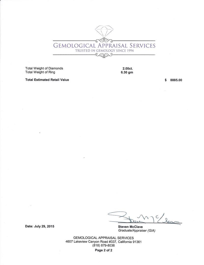 Regarding Appraised Jewelry, Watches and Loose Stones –