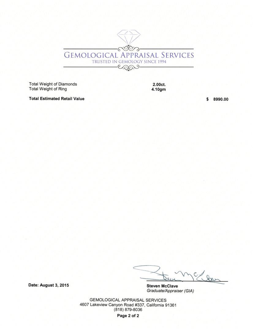 Regarding Appraised Jewelry, Watches and Loose Stones –