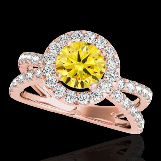 2.01 CTW Certified Si Fancy Intense Yellow Diamond Solitaire Halo Ring 10K Rose Gold ---- Luxury Designer Brand Ring Appraised Retail Price at $13,800 ---- SKU Number US34033 10k Rose gold Ring Size is 7, Ring measuring approx. Uniform, weighing in total approx. 5.2 grams. Made in the USA and is stamped 10k, Main stone 1.00 carat total weight containing 1 pieces of Intense Fancy Yellow color with SI quality Round shape cut Diamond , Stone #2 1.01 carat total weight containing 44 pieces of H-I color with VS/SI quality Round shape cut