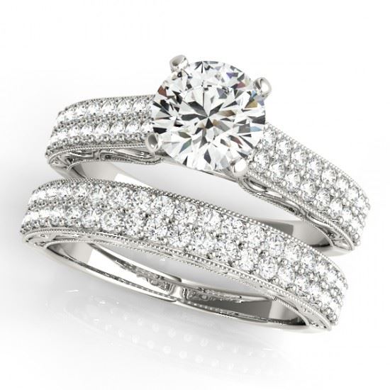 REF-424M2H -32135 ---- 2.01 CTW Certified VS/SI Diamond Pave 2Pc Set Solitaire Wedding 14K White Gold ---- Luxury Designer Brand 2 Pc Set Appraised at $21,000 Certificate Number US32135 14k White gold, 2 Pc Set Size is 7, 2 Pc Set measuring approx. Uniform, weighing in total approx. 8 grams. Made in the USA and is stamped 14k, Main stone 1 carat total weight containing 1 pieces of H-J color with VS/SI quality Round shape cut Diamond , Stone #2 0.45 carat total weight containing 36 pieces of H-I color with VS/SI quality Round shape cut Diamond , Stone #3 0.56 carat total weight containing 42 pieces of G-H color with VS/SI quality Round shape cut Diamond