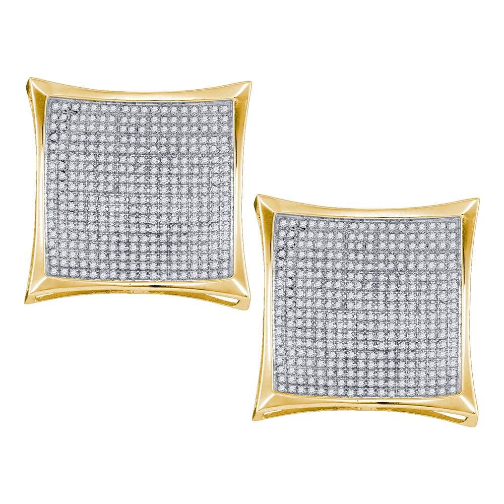 REF-142M4H- SKU: GD57115 ---- 2.01 CTW Diamond Square Kite Cluster Screwback Earrings 10KT Yellow Gold
