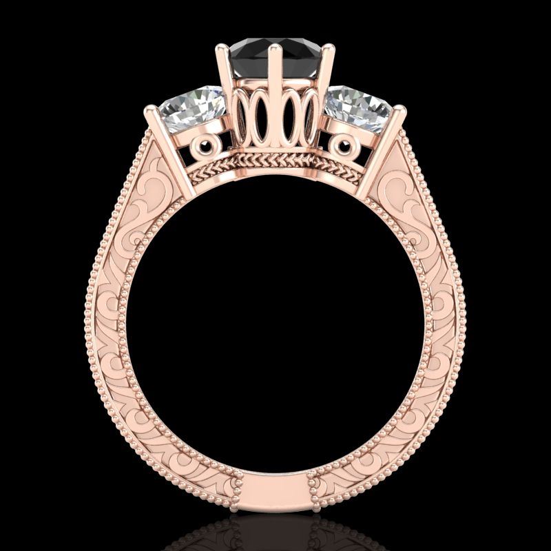 REF-241A8X -37577 ---- 2.01 CTW Fancy Black Diamond Solitaire Art Deco 3 Stone Ring 18K Rose Gold ---- Luxury Designer Brand 3 stone ring Appraised at $14,650 Certificate Number US37577 18k Rose gold, 3 stone ring Size is 7, 3 stone ring measuring approx. Uniform, weighing in total approx. 11 grams. Made in the USA and is stamped 18k, Main stone 1 carat total weight containing 1 pieces of Black Opaque color with VS quality Round shape cut Diamond , Stone #2 1.01 carat total weight containing 2 pieces of H-I color with VS/SI quality Round shape cut Diamond