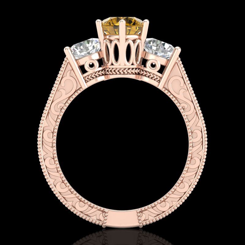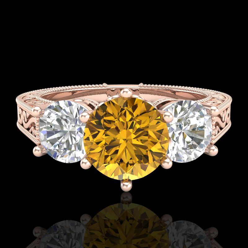 REF-343N6Y -37582 ---- 2.01 CTW Intense Fancy Yellow Diamond Art Deco 3 Stone Ring 18K Rose Gold ---- Luxury Designer Brand 3 stone ring Appraised at $20,800 Certificate Number US37582 18k Rose gold, 3 stone ring Size is 7, 3 stone ring measuring approx. Uniform, weighing in total approx. 11 grams. Made in the USA and is stamped 18k, Main stone 1 carat total weight containing 1 pieces of Intense Fancy Yellow color with SI quality Round shape cut Diamond , Stone #2 1.01 carat total weight containing 2 pieces of H-I color with VS/SI quality Round shape cut Diamond