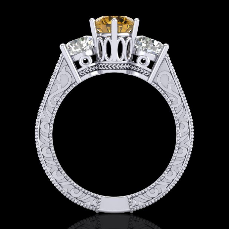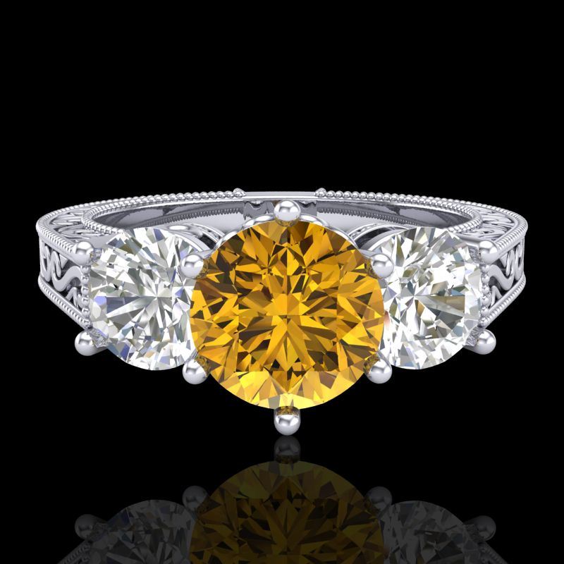 REF-343W6F -37581 ---- 2.01 CTW Intense Fancy Yellow Diamond Art Deco 3 Stone Ring 18K White Gold ---- Luxury Designer Brand 3 stone ring Appraised at $20,800 Certificate Number US37581 18k White gold, 3 stone ring Size is 7, 3 stone ring measuring approx. Uniform, weighing in total approx. 11 grams. Made in the USA and is stamped 18k, Main stone 1 carat total weight containing 1 pieces of Intense Fancy Yellow color with SI quality Round shape cut Diamond , Stone #2 1.01 carat total weight containing 2 pieces of H-I color with VS/SI quality Round shape cut Diamond
