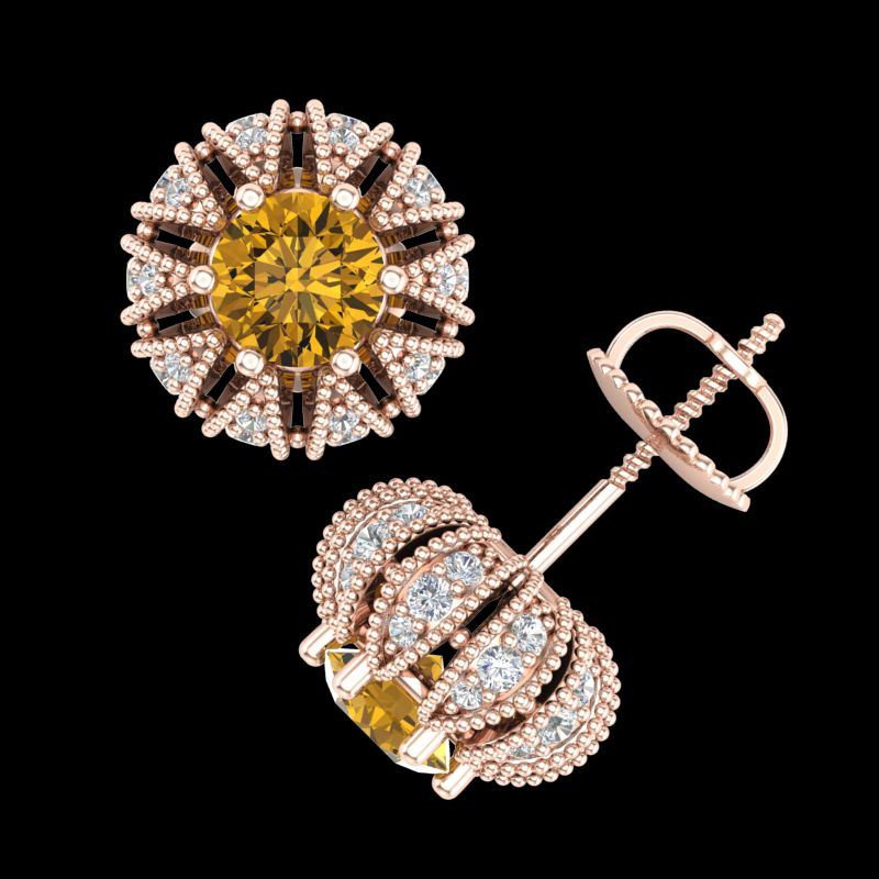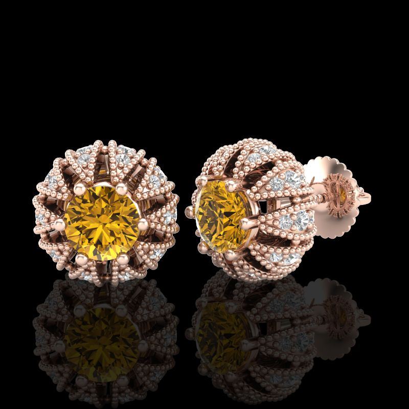 REF-210K9W -37736 ---- 2.01 CTW Intense Fancy Yellow Diamond Art Deco Stud Earrings 18K Rose Gold ---- Luxury Designer Brand Earring Appraised at $13,900 Certificate Number US37736 18k Rose gold, Earring Size is Larger, Earring measuring approx. Uniform, weighing in total approx. 6 grams. Made in the USA and is stamped 18k, Main stone 1.22 carat total weight containing 2 pieces of Intense Fancy Yellow color with SI quality Round shape cut Diamond , Stone #2 0.79 carat total weight containing 60 pieces of H-I color with VS/SI quality Round shape cut Diamond