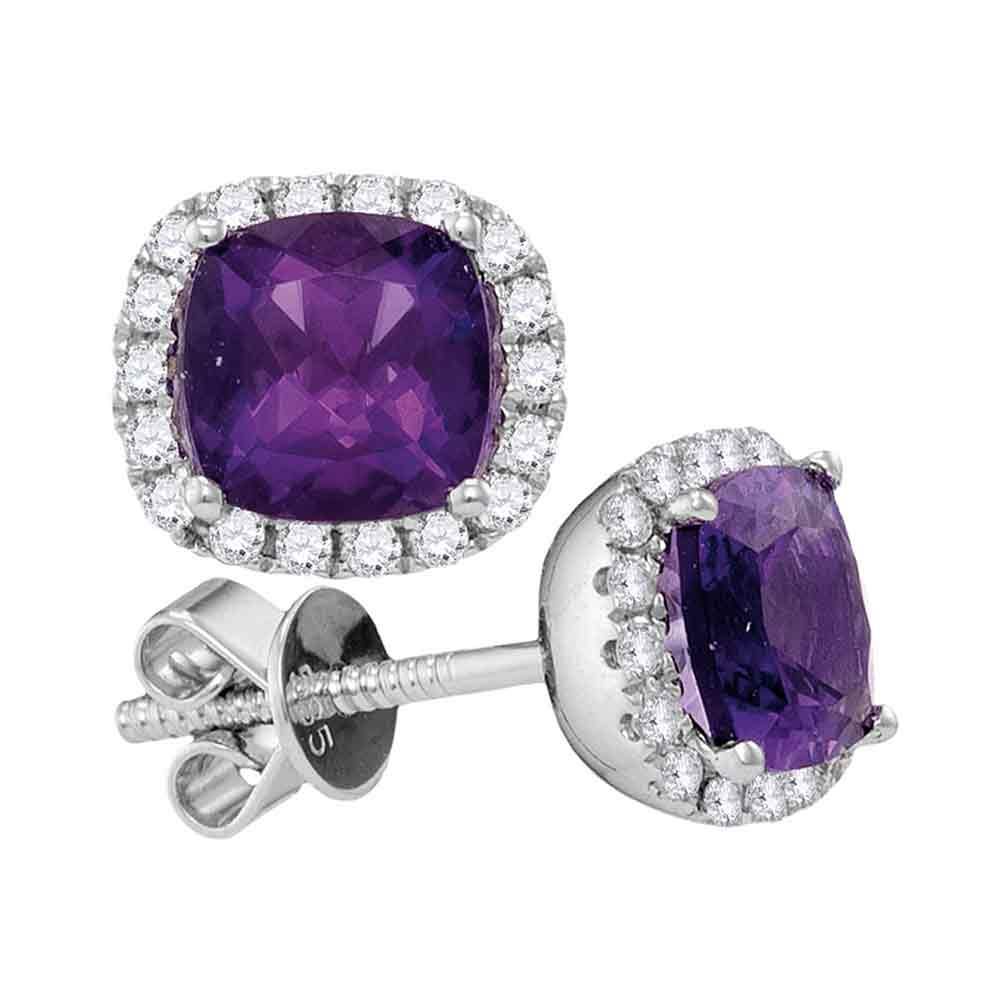 REF-67M4H- SKU: GD104983 ---- 2.01 CTW Princess Natural Amethyst Diamond Stud Earrings 14KT White Gold