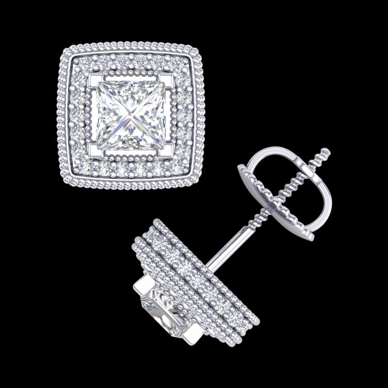 REF-245W5F -37127 ---- 2.01 CTW Princess VS/SI Diamond Solitaire Art Deco Earrings 18K White Gold ---- Luxury Designer Brand Earring Appraised at $12,150 Certificate Number US37127 18k White gold, Earring Size is Larger, Earring measuring approx. Uniform, weighing in total approx. 7.5 grams. Made in the USA and is stamped 18k, Main stone 1.09 carat total weight containing 2 pieces of H-J color with VS/SI quality Princess shape cut Diamond , Stone #2 0.92 carat total weight containing 100 pieces of H-I color with VS/SI quality Round shape cut Diamond
