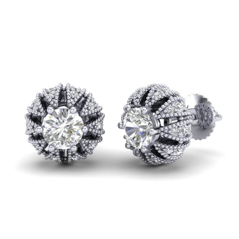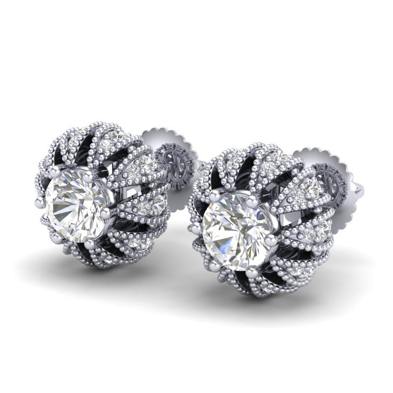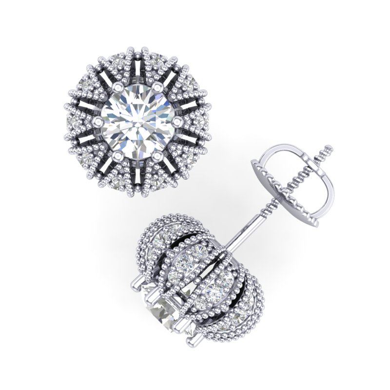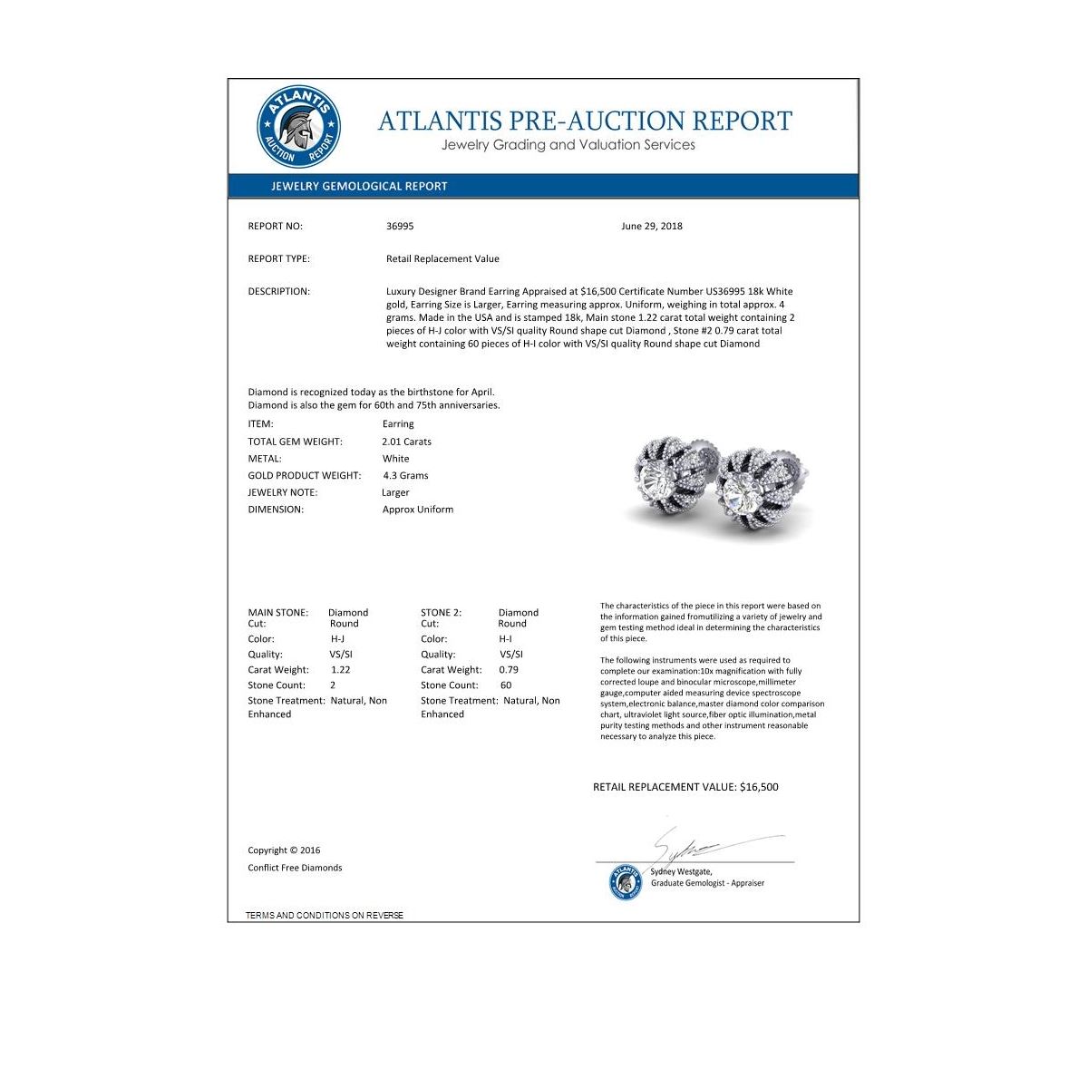 REF-272W8F -36995 ---- 2.01 CTW VS/SI Diamond Art Deco Micro Pave Stud Earrings 18K White Gold ---- Luxury Designer Brand Earring Appraised at $16,500 Certificate Number US36995 18k White gold, Earring Size is Larger, Earring measuring approx. Uniform, weighing in total approx. 4 grams. Made in the USA and is stamped 18k, Main stone 1.22 carat total weight containing 2 pieces of H-J color with VS/SI quality Round shape cut Diamond , Stone #2 0.79 carat total weight containing 60 pieces of H-I color with VS/SI quality Round shape cut Diamond
