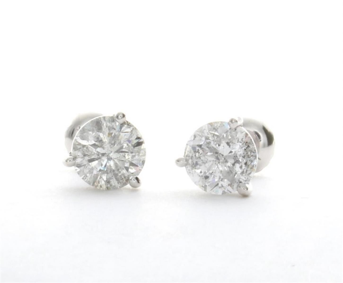 2.01 Carat 3 Prong Diamond Stud Earrings in 14K White Gold Martini Setting F Color SI3-I1 Clarity