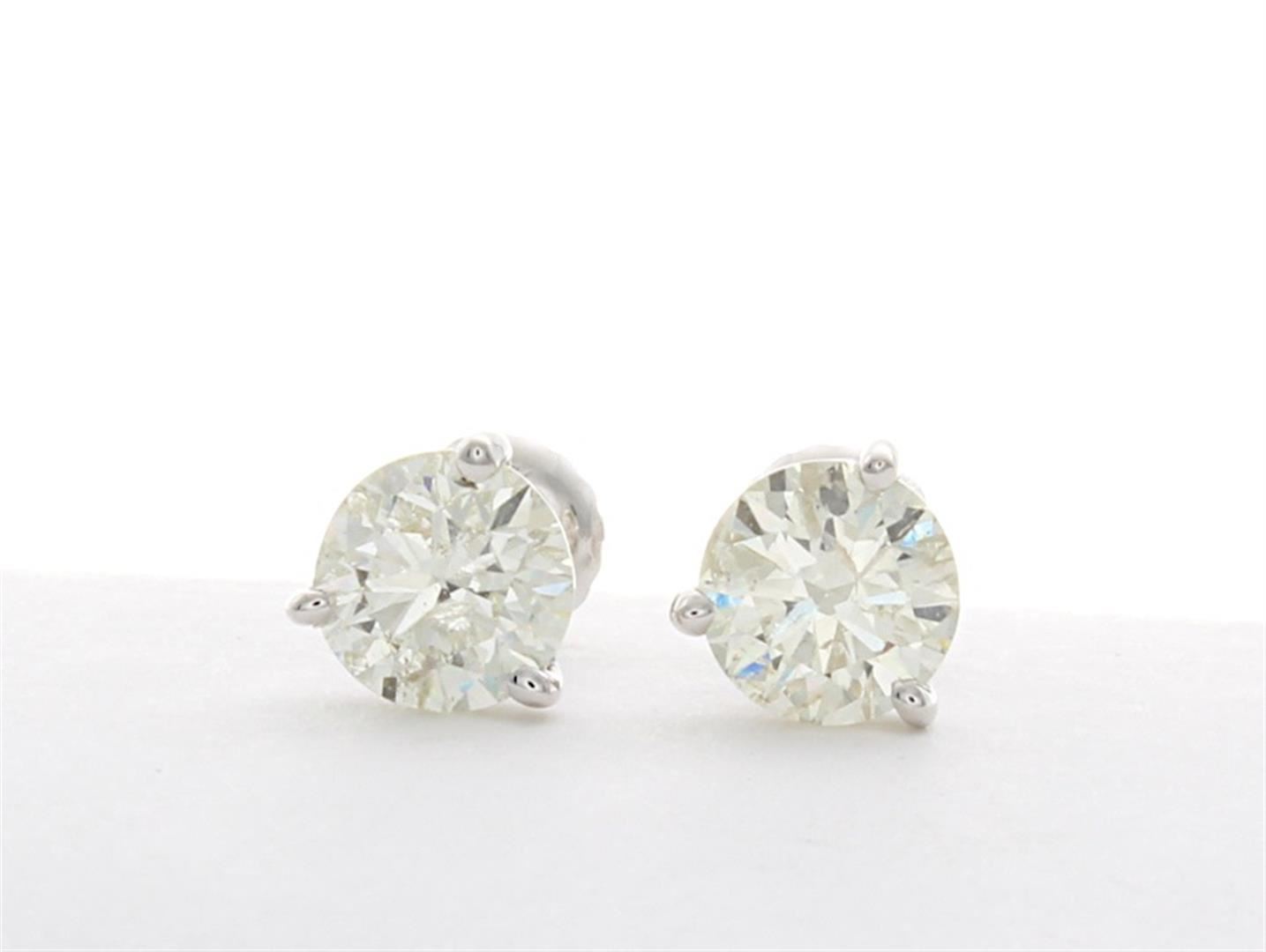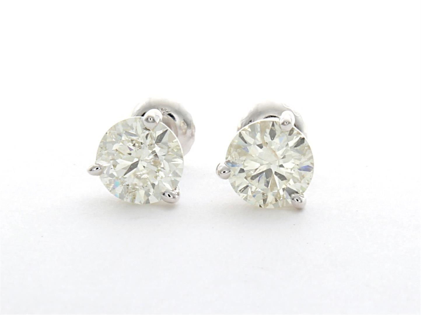2.01 Carat 3 Prong Diamond Stud Earrings in 14K White Gold Martini Setting J Color SI1-SI2 Clarity