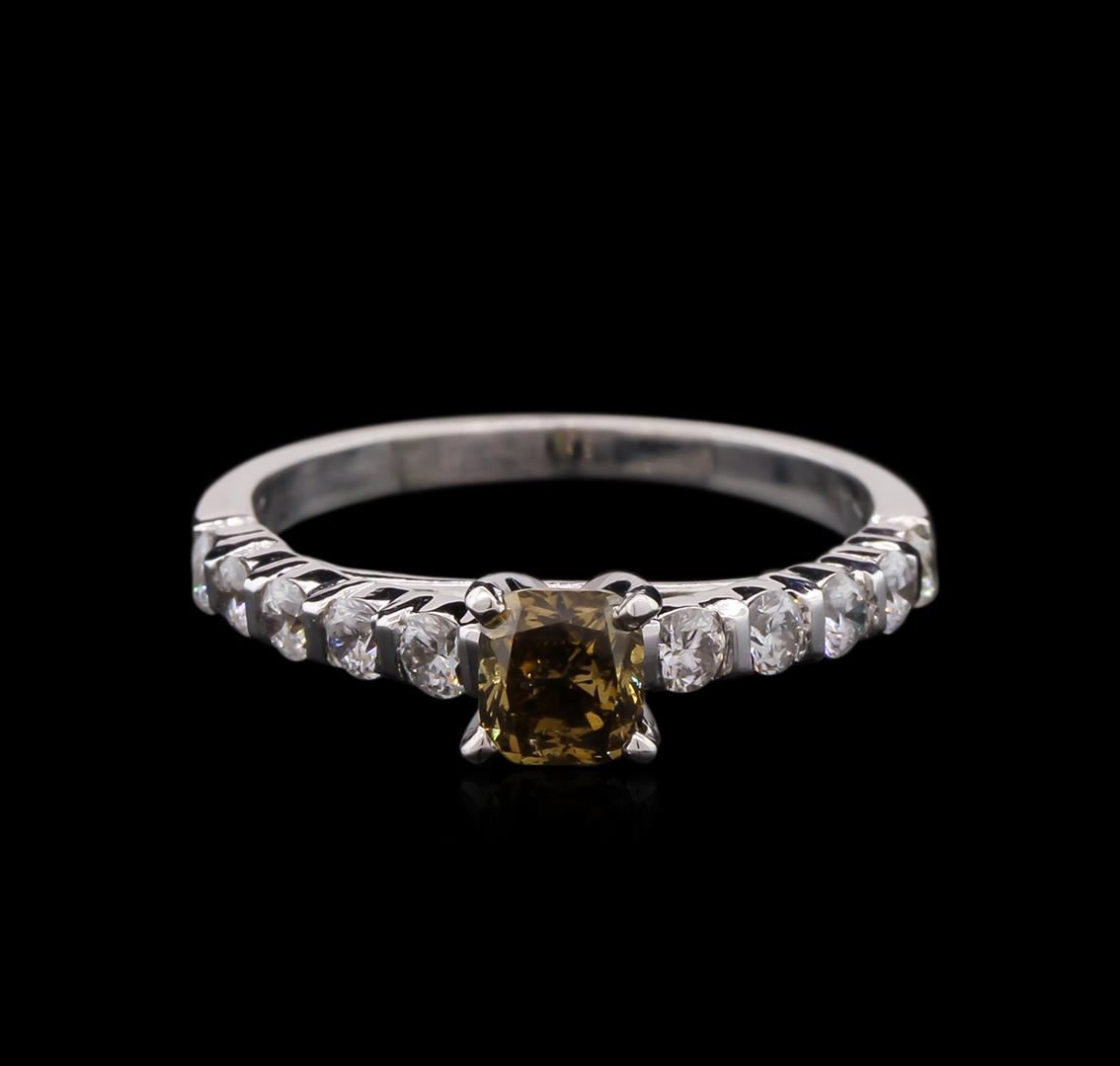 One electronically tested 14KT white gold lady's cast fashion ring with a cathedral shank with a bright polish finish. The featured lady's ring has a shank measuring 1.77 millimeters wide. Identified with markings of "14K". Condition is new, good workmanship. Containing: One prong set cushion cut diamond, measuring 4.69 x 4.28 x 2.80mm (depth est.) , 10.00.%. GTCF approximate weight of 0.54ct. Graded in the setting. Clarity: I-1 Cut Good Ten channel set round brilliant cut diamonds, measuring 2.30 - 2.25 x 1.48mm (depth est.) approximate total weight of 10 Stones = 0.47ct. Graded in the setting. Clarity: SI-2 to I-1. Color: H - I. Cut Good. Total Weight of Diamonds 1.01ct. Total Weight of Ring 2.60gm. GAS Appraised at $3,665.00.