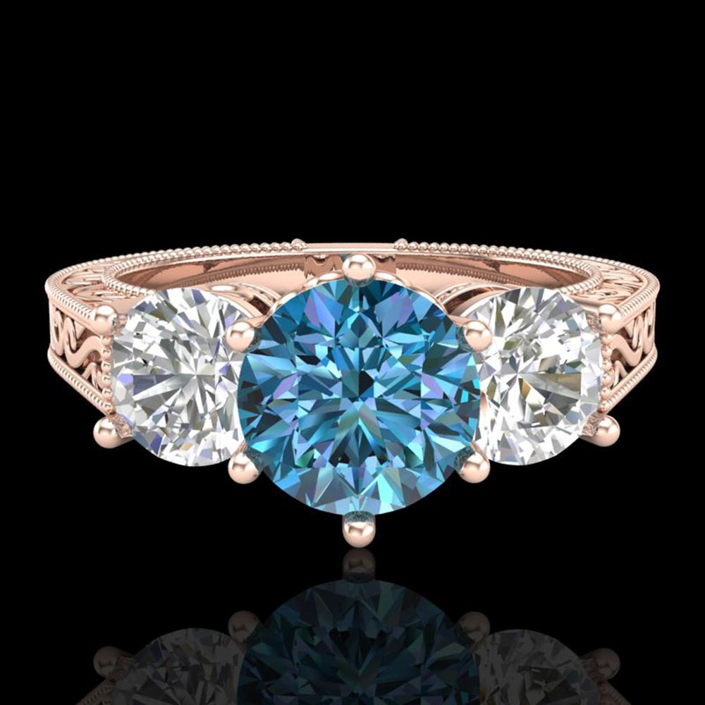 REF-343M6G - SKU: 37580 ---- 2.01 ctw Fancy Intense Blue Diamond Art Deco Ring 18k Rose Gold