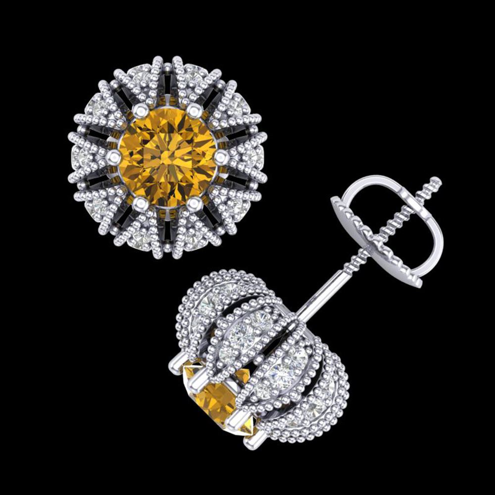 REF-210X9A - SKU: 37735 ---- 2.01 ctw Intense Fancy Yellow Diamond Art Deco Earrings 18k White Gold