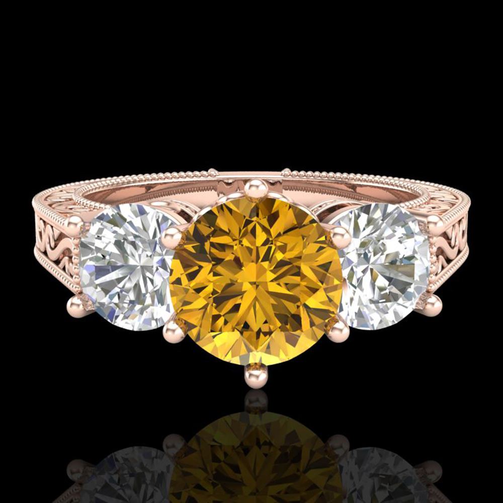 REF-343R6K - SKU: 37582 ---- 2.01 ctw Intense Fancy Yellow Diamond Art Deco Ring 18k Rose Gold
