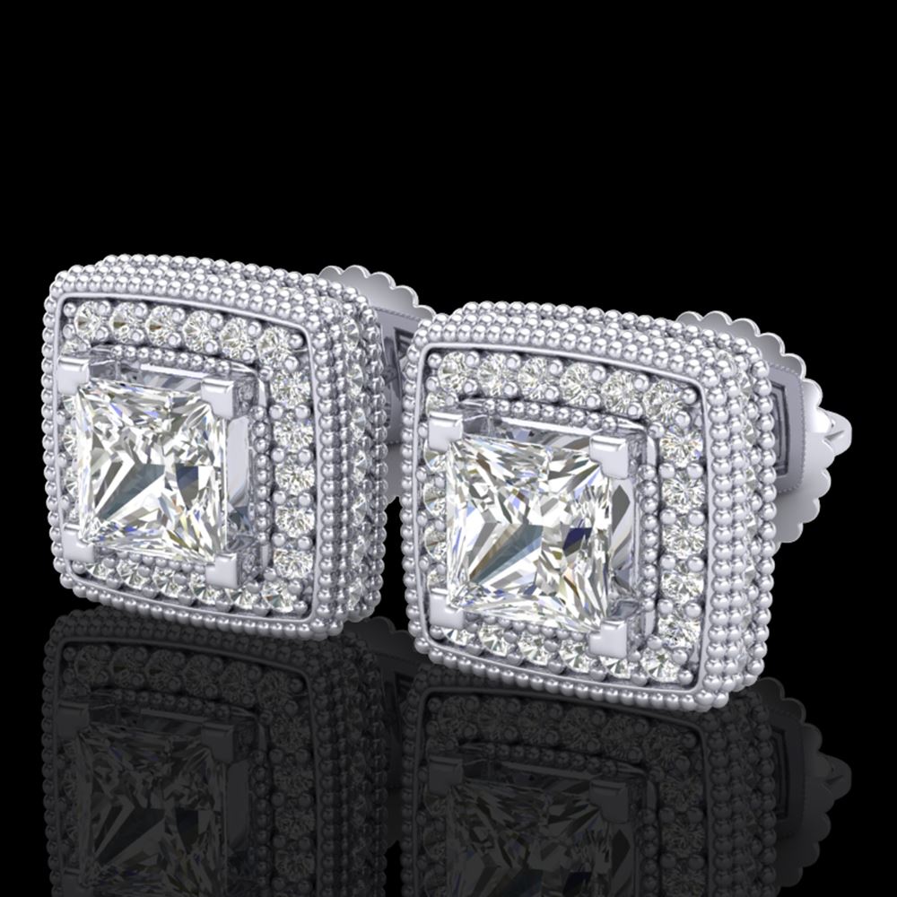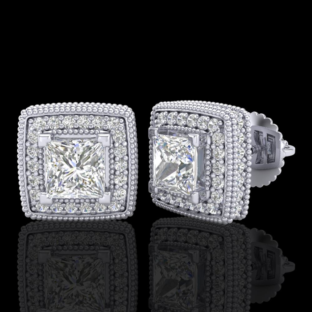 REF-285X5A - SKU: 37127 ---- 2.01 ctw Princess VS/SI Diamond Art Deco Earrings 18k White Gold