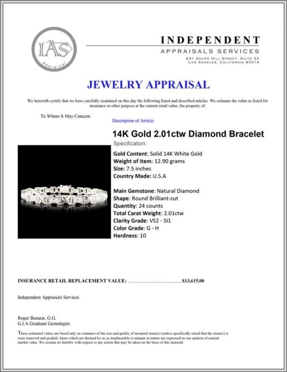 Regarding Appraised Jewelry and Loose Stones - Auctionfarm sends them out to a third party for Retail Replacement Value Appraisals, which are the most common. These types of evaluations are written for insurance needs. This would be the cost to replace the jewelry with an item of equal quality and kind, considered to be the current market price or the replacement value. This type of appraisal is done to protect you in the event of damage or loss of a valuable item. Our appraisals are conducted by independent 3rd Party appraisal firms that utilizes Certified GIA Gemologist. Appraisals should be used for verification of gemstone and/or metal weight, size, and grade only, not actual value. Appraisal value should be considered for insurance purposes only, not actual value, as price varies greatly from retail locations thru out the world. Items should not be purchased with the expectation to resell for appraisal price, or for profit.