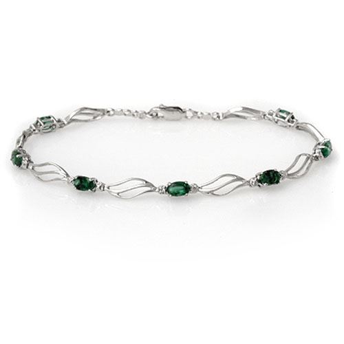 REF-37K8W -10833 ---- 2.02 CTW Emerald & Diamond Bracelet 10K White Gold ---- Luxury Designer Brand Bracelet Appraised at $2,500 Certificate Number US10833 10k White gold, Bracelet Size is 7 Inches, Bracelet measuring approx. 7" x 1/8", weighing in total approx. 6.6 grams. Made in the USA and is stamped 10k, Main stone 2 carat total weight containing 7 pieces of Intense Green color with AAA quality Oval shape cut Emerald , Stone #2 0.02 carat total weight containing 2 pieces of H-I color with VS/SI quality Round shape cut Diamond