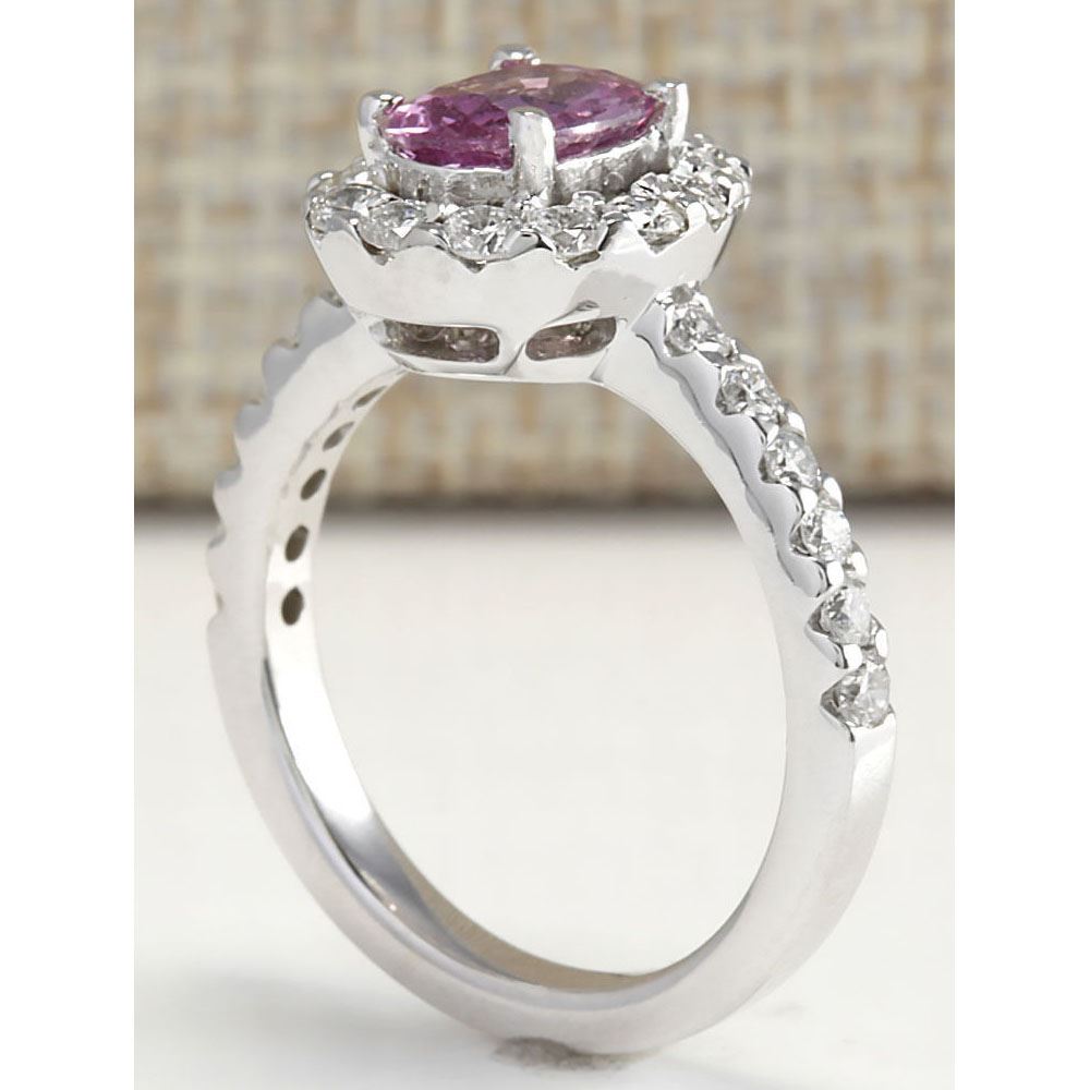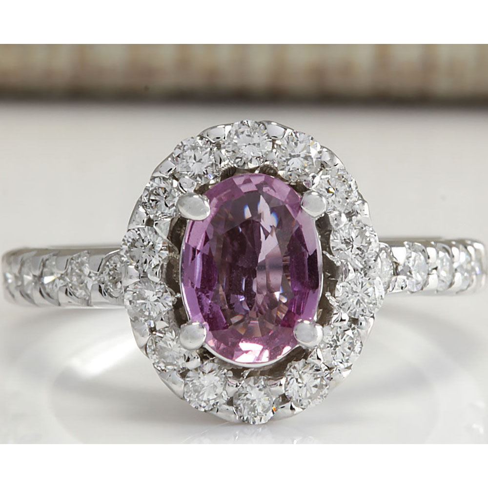 2.02 CTW Natural Pink Ceylon Sapphire Diamond Ring 18K Solid White Gold