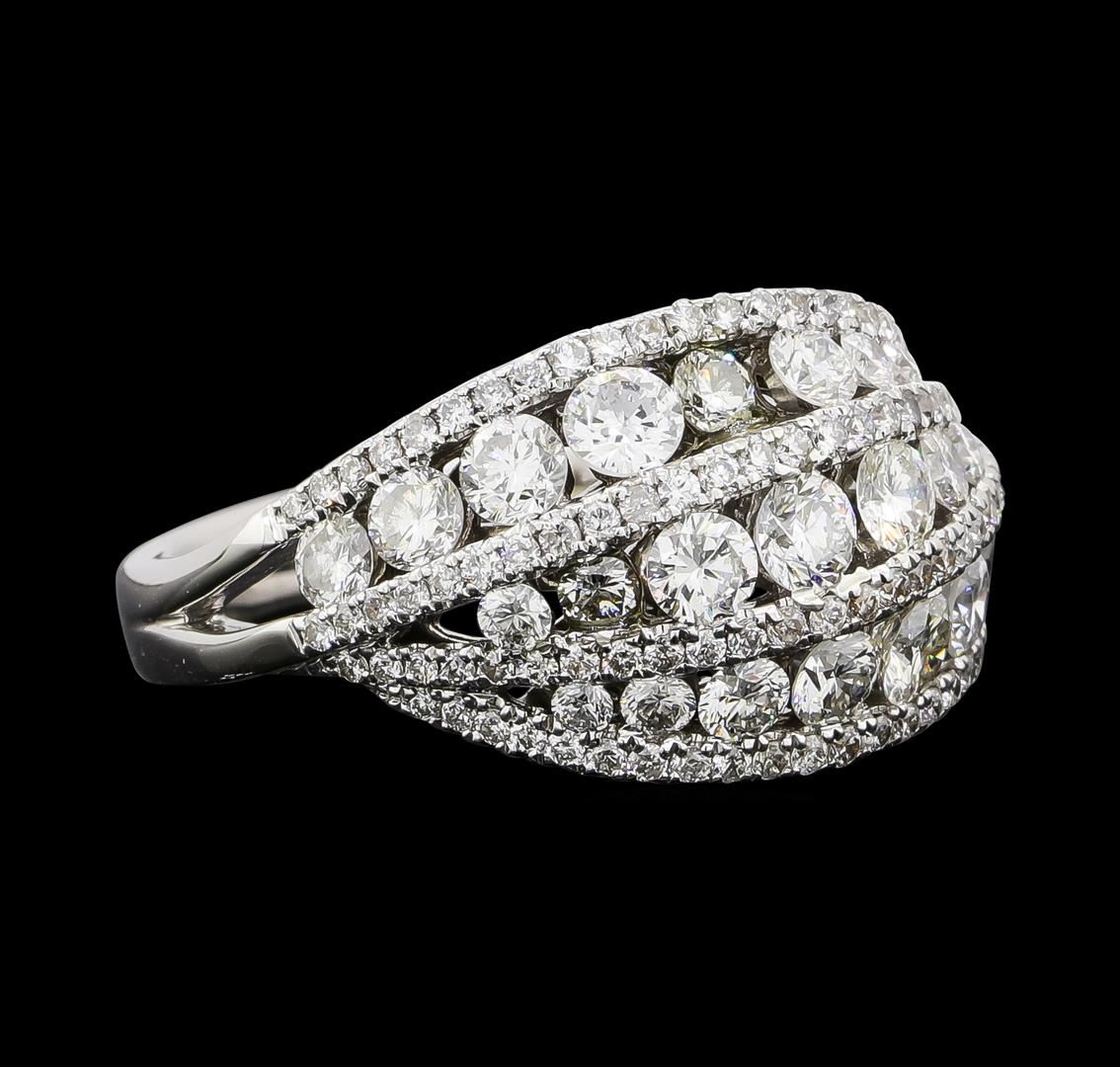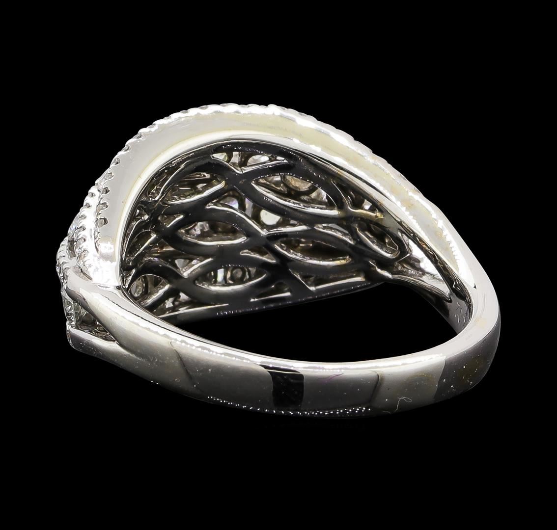 One electronically tested 18KT white gold lady's cast fashion dome style ring with a split bypass shank with a bright polish finish. The featured lady's ring has a shank measuring 3.06 millimeters wide. Identified with markings of '18K'. Condition is new, good workmanship. Containing: Ten prong set round brilliant cut diamonds, measuring 3.20 - 2.90 x 1.89mm (depth est.) approximate total weight of 10 Stones = 1.02ct. Graded in the setting. Clarity SI-1 to SI-2. Color: H - I Cut Good Thirteen prong set round brilliant cut diamonds, measuring 2.60 - 1.60 x 1.30mm (depth est.) approximate total weight of 13 Stones = 0.44ct. Graded in the setting. Clarity SI-1 to SI-2. Color: H - I Cut Good Ninety-Eight prong set round brilliant cut diamonds, measuring 1.20 - 1.10 x 0.71mm (depth est.) approximate total weight of 98 Stones = 0.56ct. Graded in the setting. Clarity SI-1 to I-1. Color: H - J Cut Good. Total Weight of Diamonds 2.02ct.. Total Weight of Ring 7.60gm. GAS Appraised at $5,930.00.