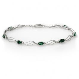Diamond: 2 Round cut @ 0.02 ctw Clarity: SI-I Color: H-K Gemstone: Natural Emerald Gemstone color: GreenGemstone quality: Good-to-Very Good Gemstone Cut & Weight: 6 Oval cut @ 2.0 ctw Metal Purity & Color : 10K Gold-White Gold weight: 4.75 grams Dimension: Approx. 7" x 1/8"