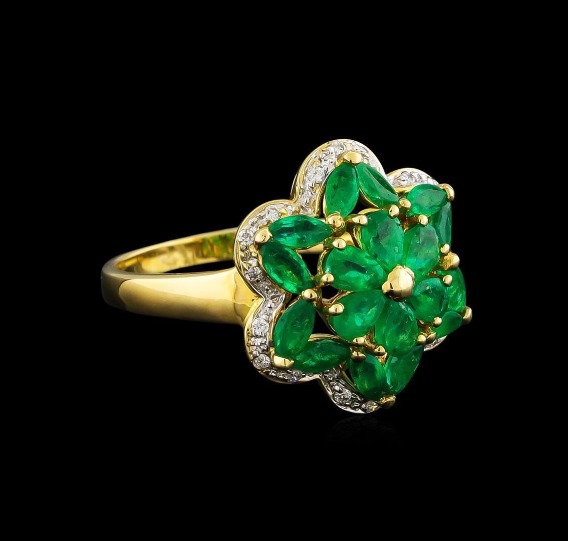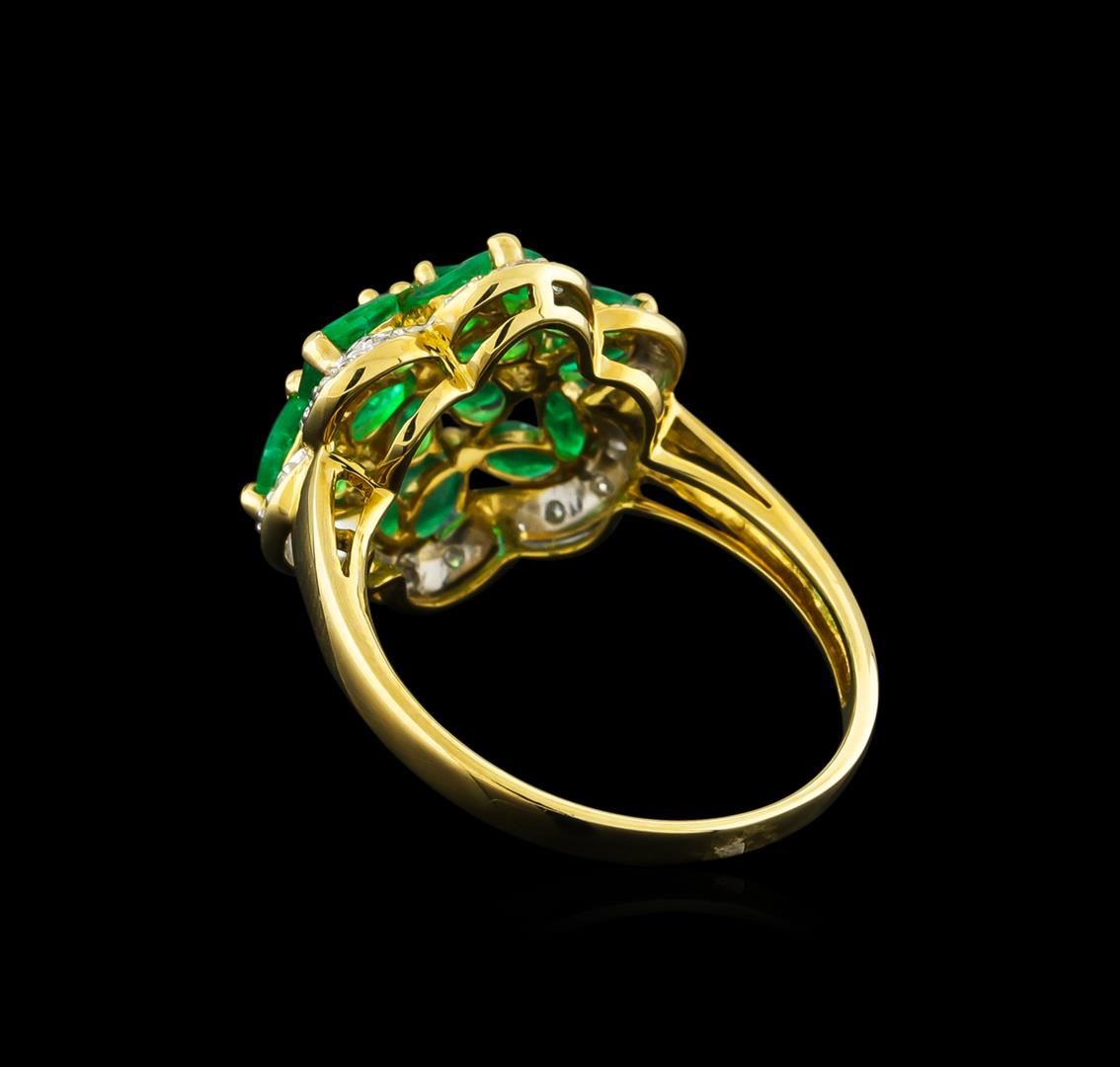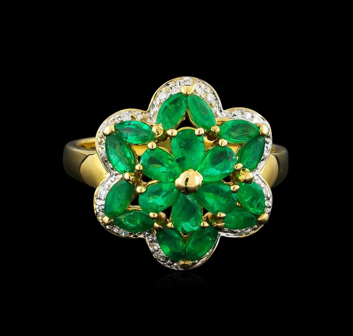 One ring featuring: 10KT yellow gold weighing 2.80 grams containing 18 emeralds with a total weight of 2.02ct and 18 round diamonds.