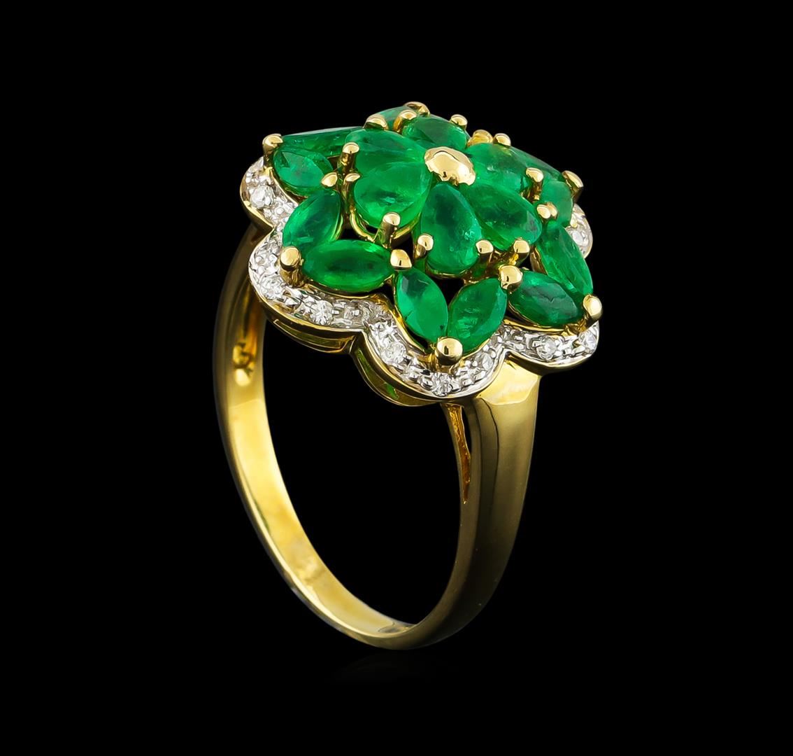 One ring featuring: 10KT yellow gold weighing 2.80 grams containing 18 emeralds with a total weight of 2.02ct and 18 round diamonds.