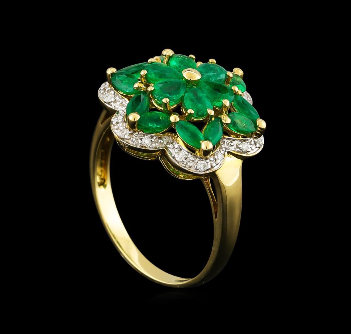 One ring featuring: 10KT yellow gold weighing 2.80 grams containing 18 emeralds with a total weight of 2.02ct and 18 round diamonds.