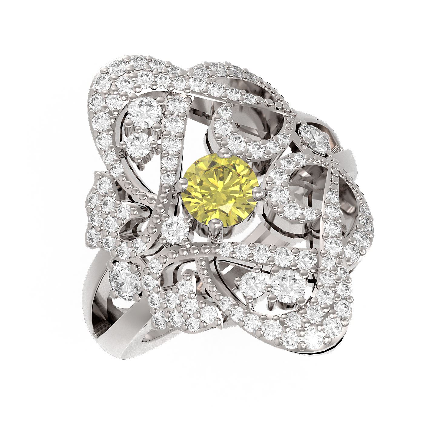 REF-258X4A - SKU: 55877 ---- 2.02 ctw Fancy Yellow Diamond Ring 18K White Gold