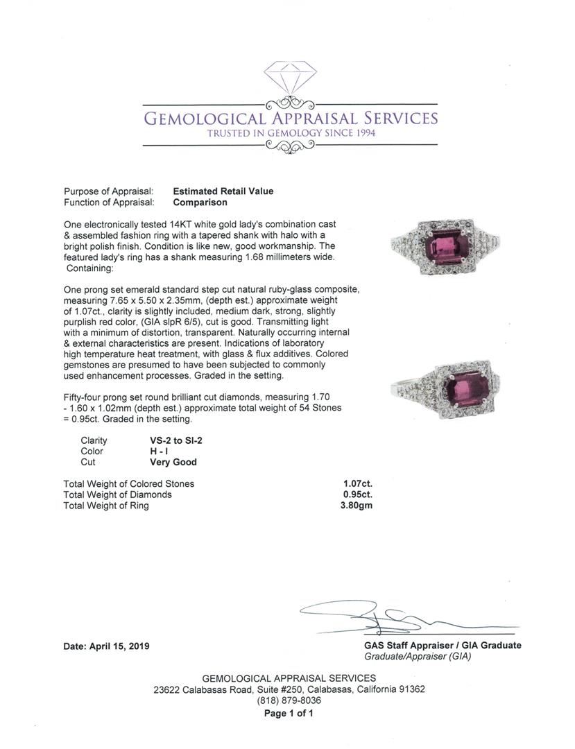 One electronically tested 14KT white gold lady's combination cast & assembled fashion ring with a tapered shank with halo with a bright polish finish. The featured lady's ring has a shank measuring 1.68 millimeters wide. Condition is like new, good workma