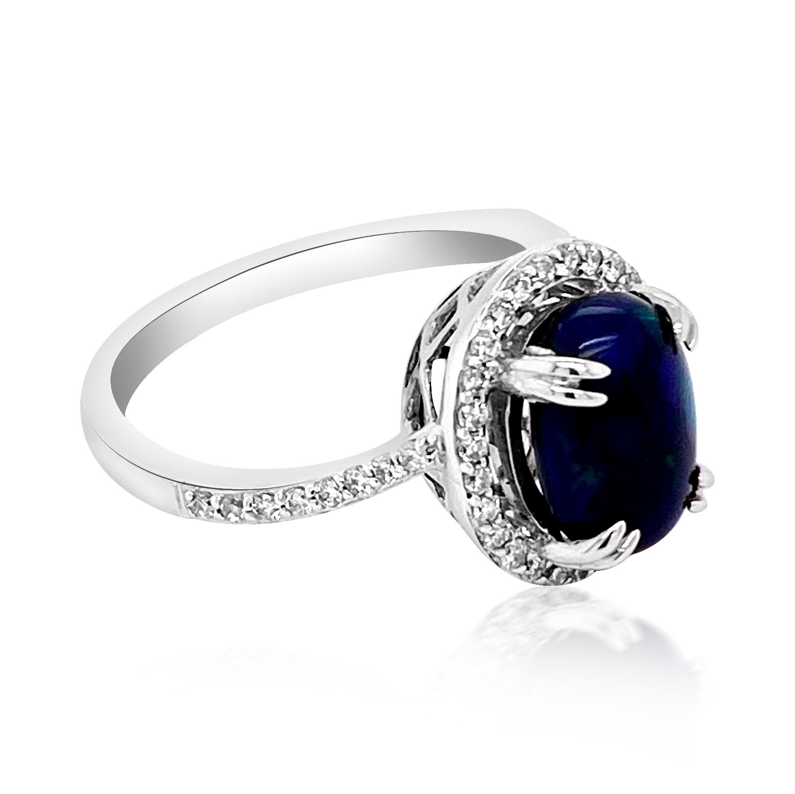 2.02ct Natural Opal 14K White Gold 3.57gm Diamond 0.31ct Ring #PJ4580