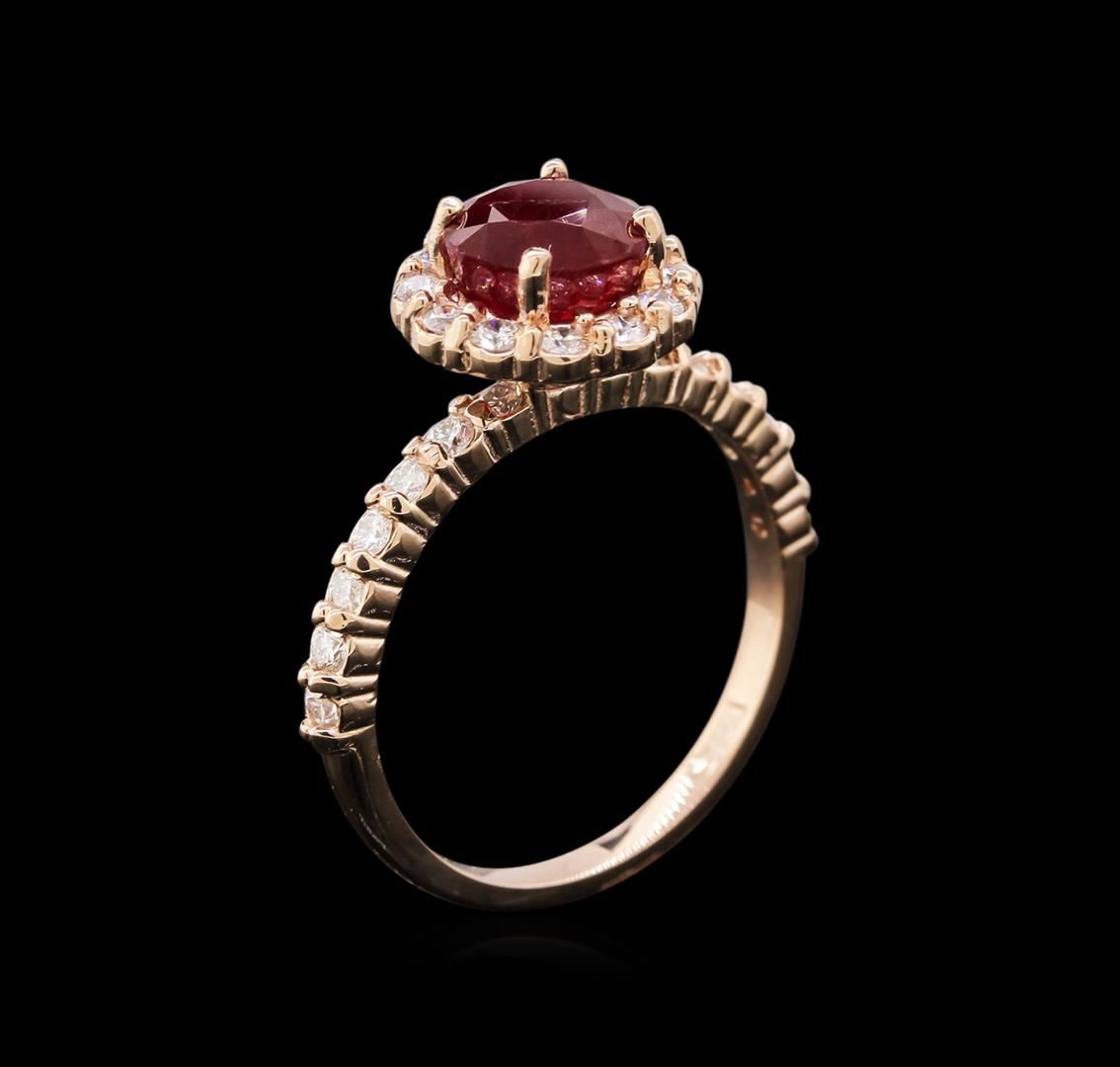 One ring featuring: 14KT rose gold weighing 3.08 grams containing one ruby with a total weight of 2.02ct and diamonds with a total weight of 0.45ct.