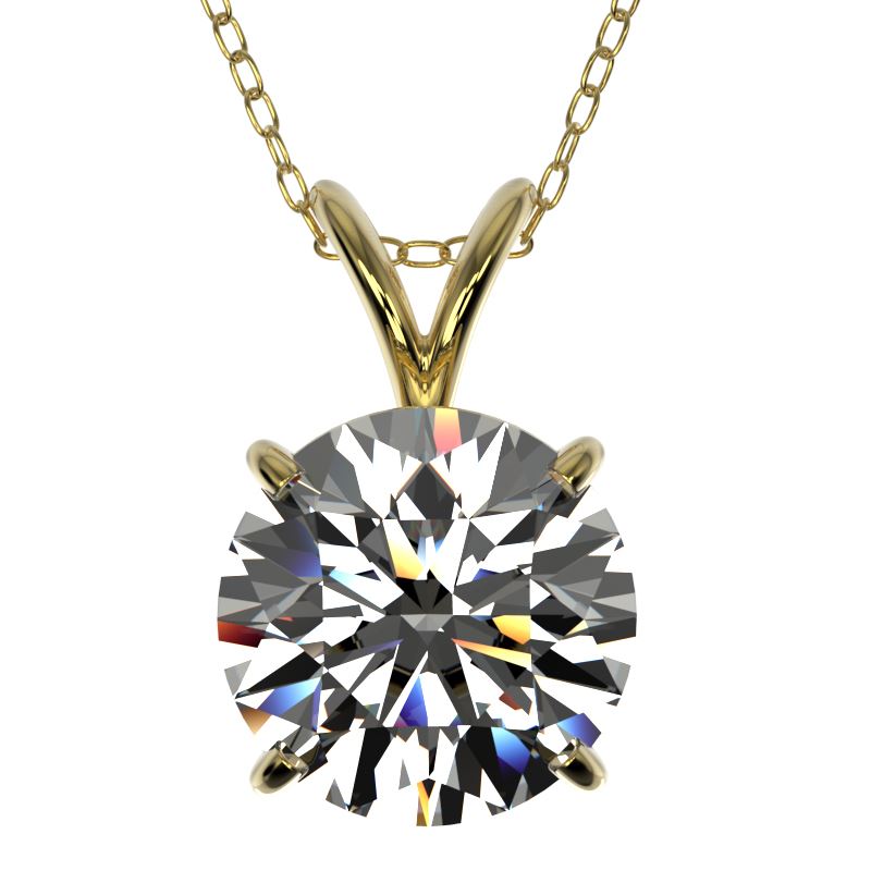 2.03 CTW Certified H-SI/I Quality Diamond Solitaire Necklace 10K Yellow Gold ---- Luxury Designer Brand Necklace Appraised Retail Price at $34,300 ---- SKU Number US36810 10k Yellow gold Necklace Size is 16 Incehs, Necklace measuring approx. Uniform, weighing in total approx. 2 grams. Made in the USA and is stamped 10k, Main stone 2.03 carat total weight containing 1 pieces of H-I color with SI/I quality Round shape cut Diamond , Stone #2 carat total weight containing pieces of color with quality shape cut