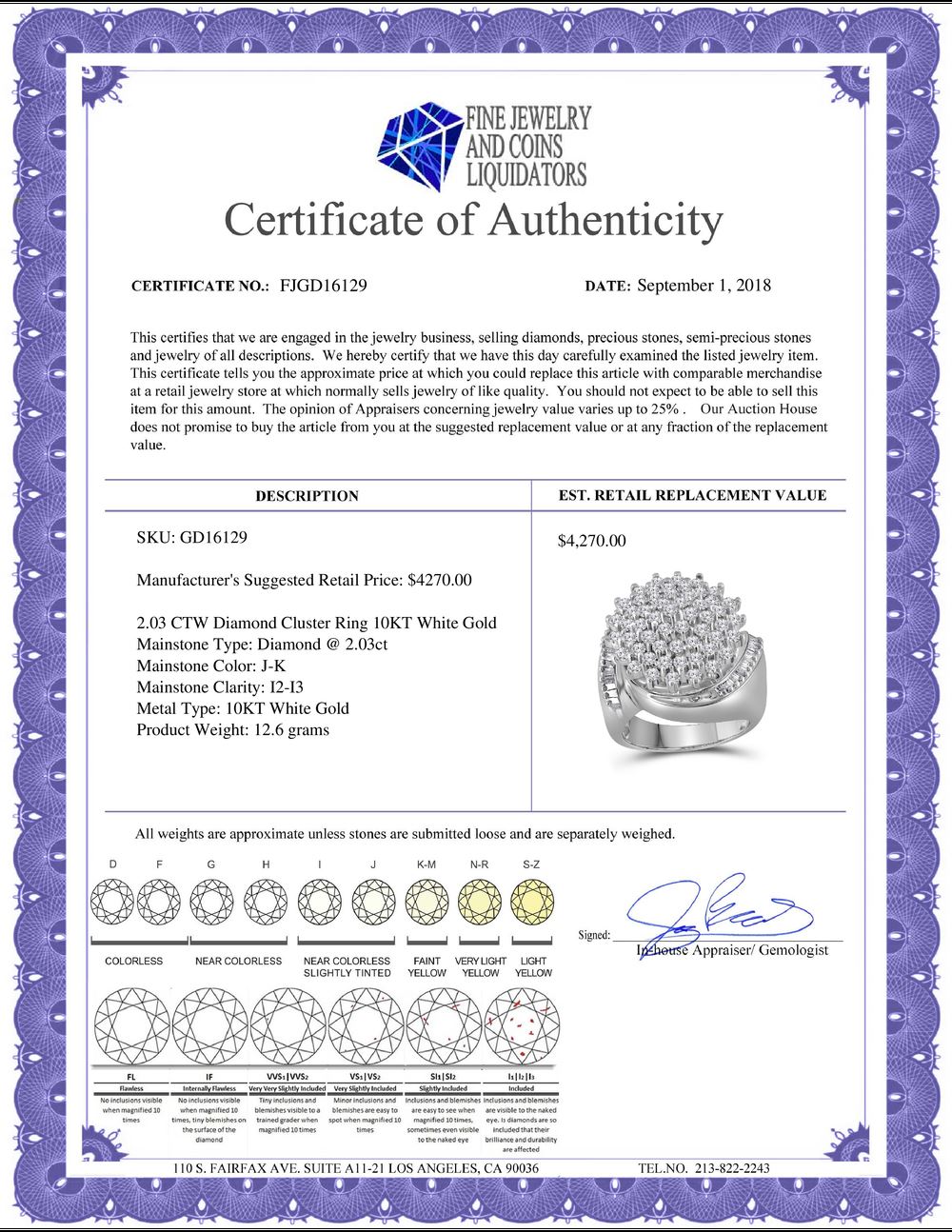 REF-108F8N- SKU: GD16129 ---- 2.03 CTW Diamond Cluster Ring 10KT White Gold