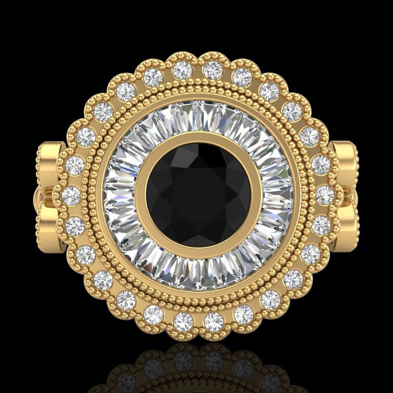 REF-203W6F -37900 ---- 2.03 CTW Fancy Black Diamond Solitaire Engagement Art Deco Ring 18K Yellow Gold ---- Luxury Designer Brand Ring Appraised at $12,300 Certificate Number US37900 18k Yellow gold, Ring Size is 7, Ring measuring approx. Uniform, weighing in total approx. 9 grams. Made in the USA and is stamped 18k, Main stone 0.75 carat total weight containing 1 pieces of Black Opaque color with VS quality Round shape cut Diamond , Stone #2 0.4 carat total weight containing 28 pieces of H-I color with VS/SI quality Round shape cut Diamond , Stone #3 0.88 carat total weight containing 26 pieces of G-H color with VS/SI quality Baguette shape cut Diamond