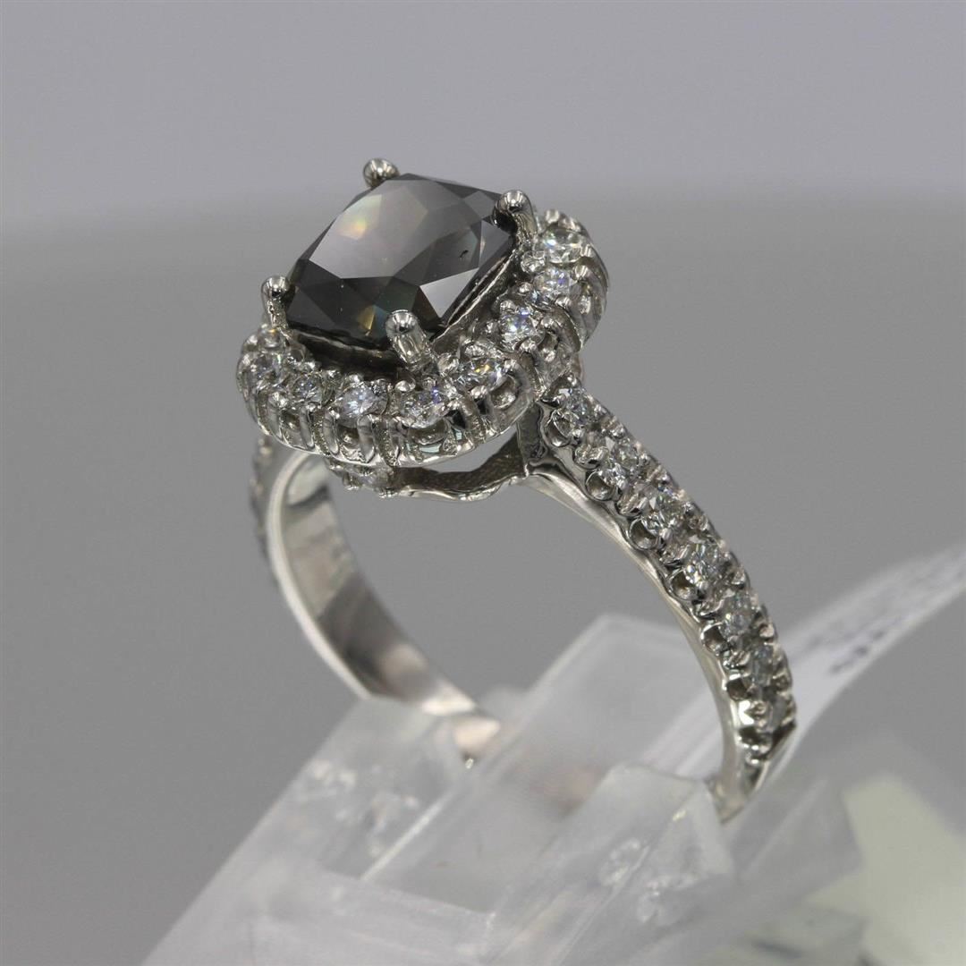 One lady's ring featuring: 14KT white gold weighing 5.90 grams containing one center brown diamond weighing 2.03ct and side diamonds weighing 0.73ctw. The center diamond is cushion cut and not enhance with SI1-SI2 clarity, fancy brown/cognac color and exc