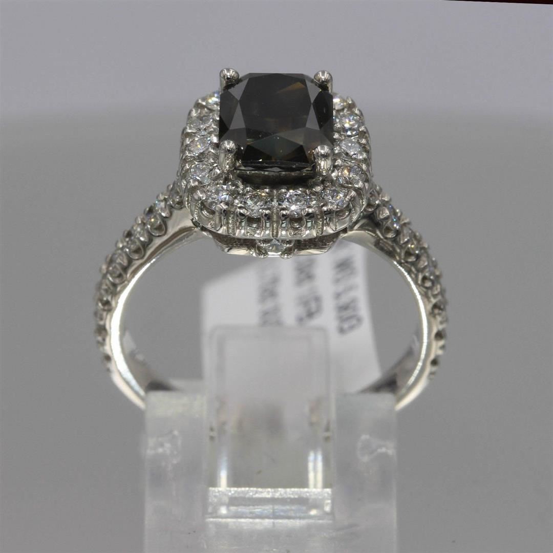 One lady's ring featuring: 14KT white gold weighing 5.90 grams containing one center brown diamond weighing 2.03ct and side diamonds weighing 0.73ctw. The center diamond is cushion cut and not enhance with SI1-SI2 clarity, fancy brown/cognac color and exc