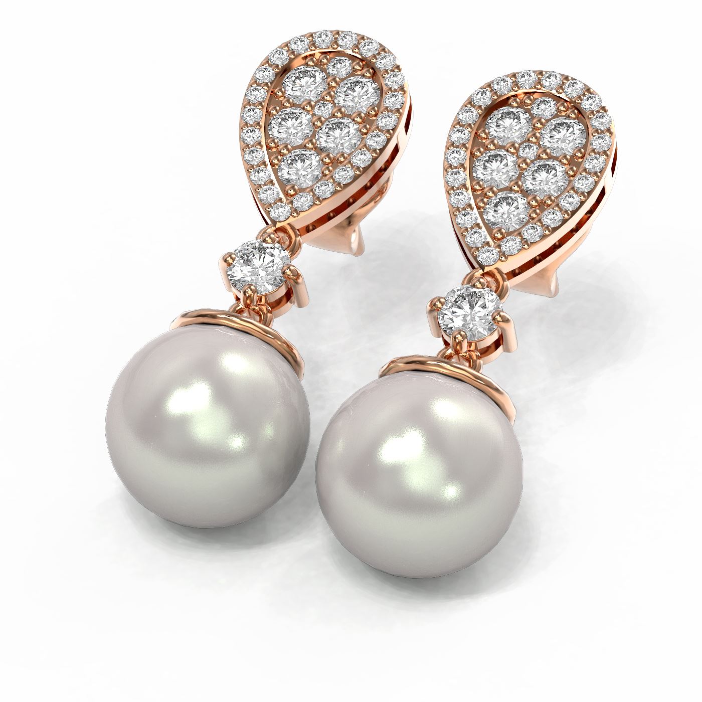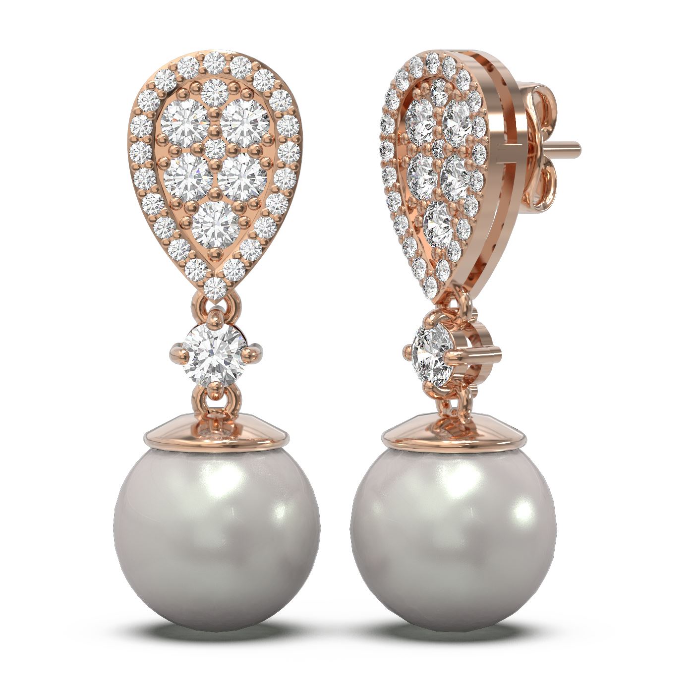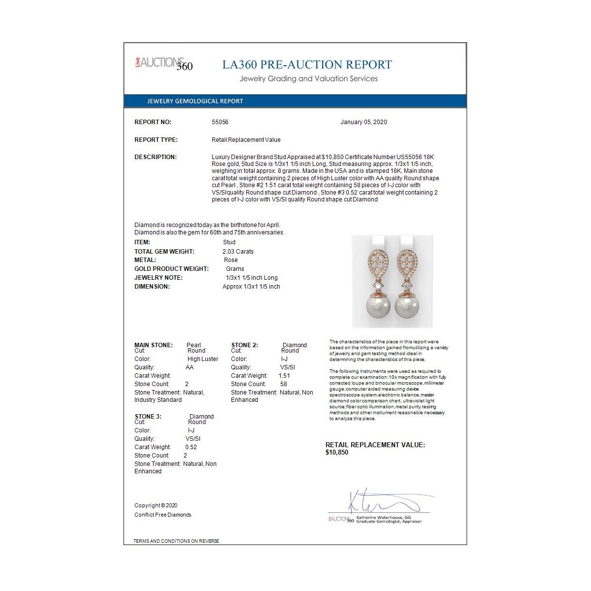 REF-219N5F - SKU: 55056 ---- 2.03 ctw Diamond & Pearl Earrings 18K Rose Gold